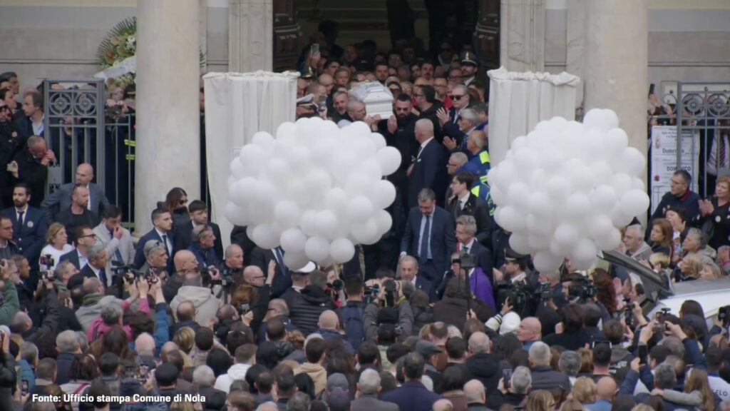 NOLA (ITALPRESS) – Nola e l’Italia intera si fermano per l’ultimo saluto a Domenico Caliendo. Il bimbo di soli due anni è deceduto lo scorso 21 febbraio al Monaldi, dopo un’agonia durata quasi due mesi. Una tragedia iniziata il 23 dicembre, quando nello stesso ospedale partenopeo gli era stato trapiantato un cuore già danneggiato. Un errore fatale che oggi trasforma Piazza Duomo in un tappeto di dolore e commozione.pc/azn