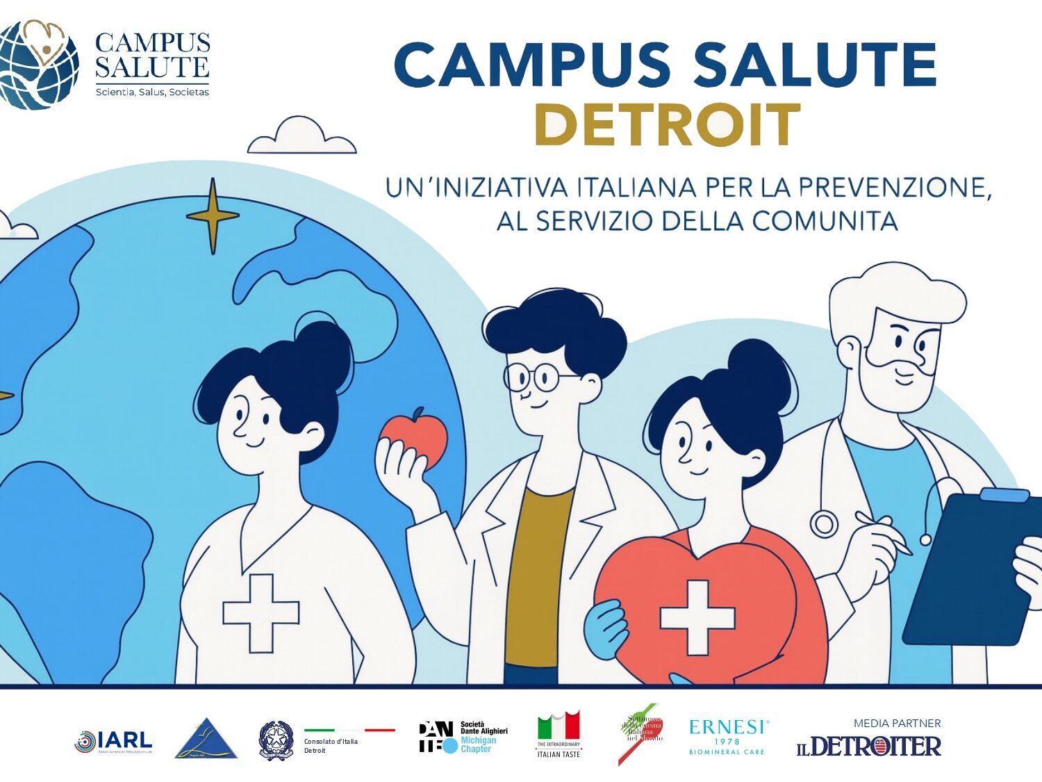 Arriva a Detroit Campus Salute, il progetto che unisce sensibilizzazione, prevenzione e partecipazione civica. Dopo numerose edizioni in Italia – l’ultima proprio a Novembre a Roma – e altre internazionali, come quella a New York tenutasi dal 23 al 28 settembre scorso -, il format approda a Motor City per tre giorni, dal 14 al 16 novembre, con eventi, incontri e check-up gratuiti dedicati alla comunità italoamericana e non solo.