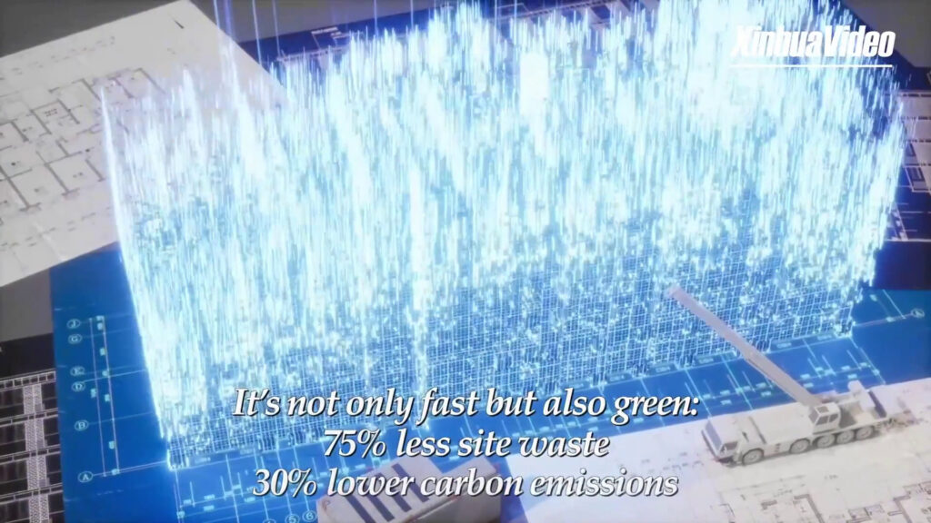 Come costruire con i Lego ma nella vita reale: a Pechino un edificio di sei piani è stato assemblato dalle fondamenta fino alla sommità in appena 46 giorni, nell’ambito di un programma di riqualificazione urbana. Il metodo non è solo veloce, ma anche ecologico: il 75% in meno di rifiuti nel cantiere e il 30% in meno di emissioni di carbonio. (XINHUA/ITALPRESS) mec/abr/mca1