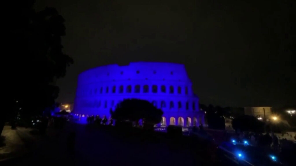 Colosseo illuminato di blu per giornata internazionale delle vittime del dovere