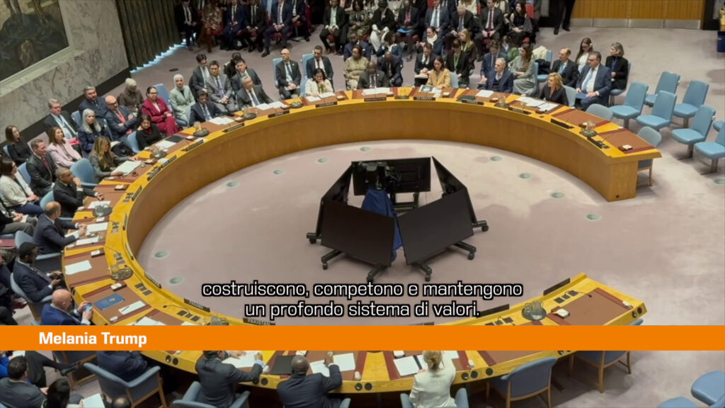 NEW YORK (STATI UNITI) (ITALPRESS) – Per la prima volta nella storia delle Nazioni Unite una first lady ha presieduto una riunione del Consiglio di Sicurezza. Come presidente di turno Usa per il mese di marzo, Melania Trump ha aperto il dibattito dedicato ai bambini nei conflitti armati e all’impatto delle nuove tecnologie, incluso l’uso dell’intelligenza artificiale nell’educazione. “Il percorso verso la pace dipende dalla nostra responsabilità di dare potere ai nostri figli attraverso l’istruzione e la tecnologia – ha detto -.